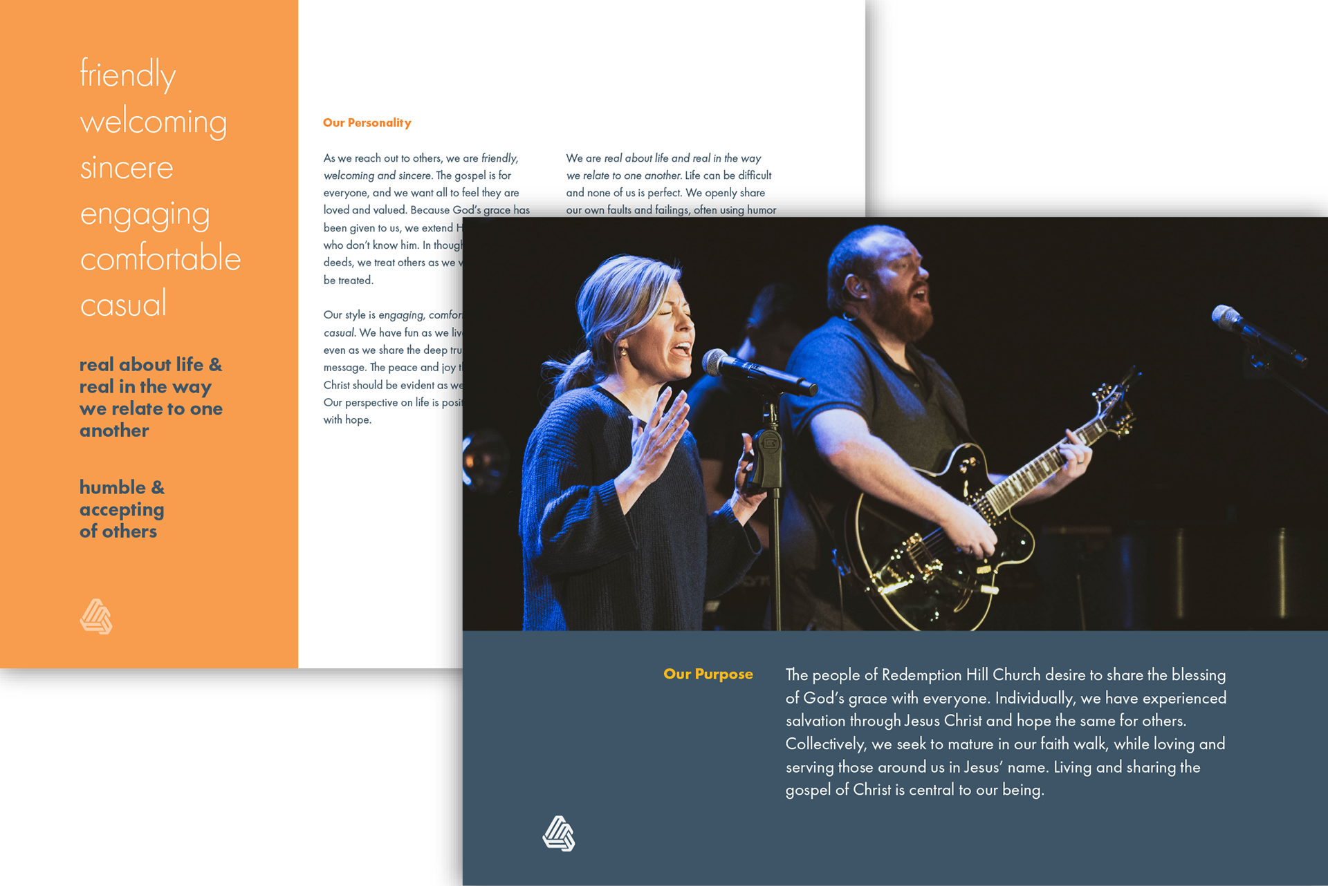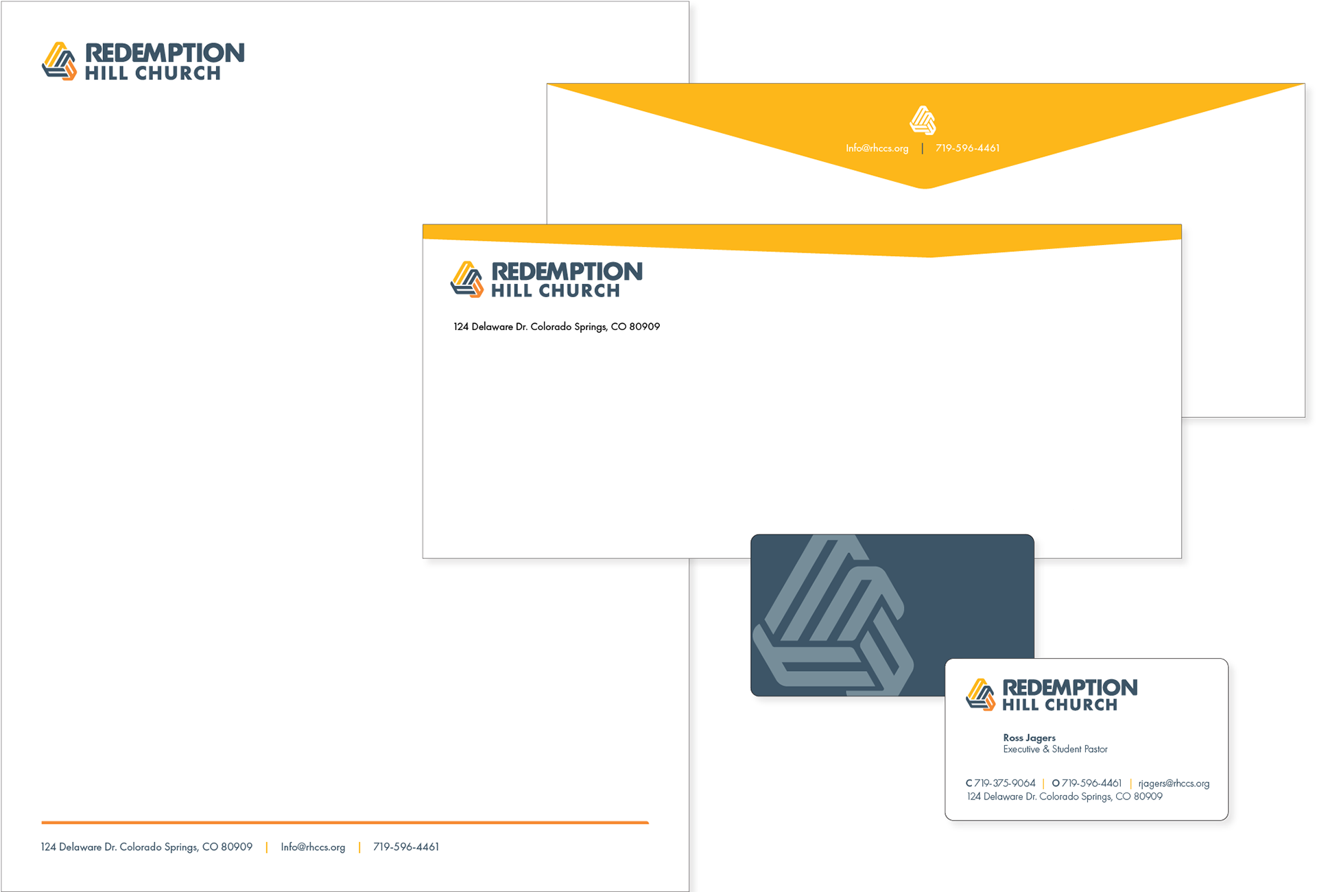 Redemption Hill Church relaunched in a new location and desired a logo to fit with the updated personality of the church. The pastoral staff and I brainstormed together to identify key elements of their church's unique personality. The resulting logo and brand identity fit exactly what they were looking for.
